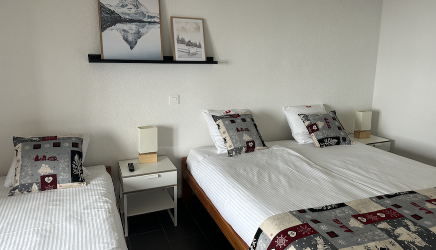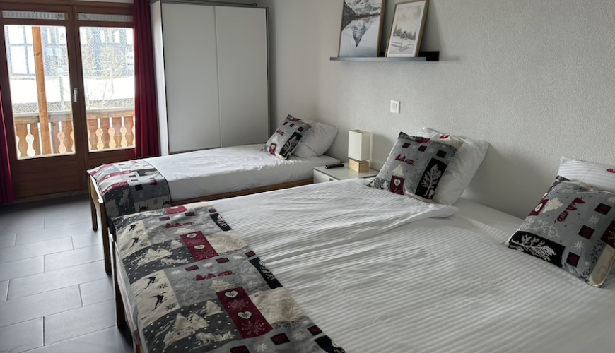 Willkommen in unseren Dreibettzimmern, ideal für einen Aufenthalt mit der Familie oder mit Freunden. Mit zusätzlichem Stauraum bieten diese Zimmer alle Annehmlichkeiten, die Sie brauchen, um sich zu entspannen und Ihren Aufenthalt zu genießen. Sie sind mit drei Betten ausgestattet, damit jedes Mitglied Ihrer Gruppe bequem untergebracht werden kann. Darüber hinaus genießen Sie von Ihrem Zimmer aus einen herrlichen Blick auf die Berge und tauchen in die einzigartige Atmosphäre unseres Standorts im Herzen des Skigebiets Portes du Soleil ein. Nutzen Sie den einfachen Zugang zu den Pisten und lassen Sie sich von der atemberaubenden Landschaft um Sie herum verführen.